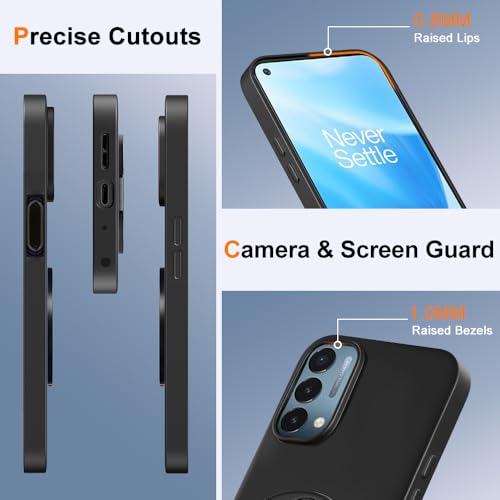Compatible for OnePlus Nord N200 5G Phone Case with Glass Screen Protector, 360° Rotatable Ring Holder Kickstand Silicone Silm Fit Shockproof Protective Cover Case for OnePlus 1+ Nord N200 5G – Blac