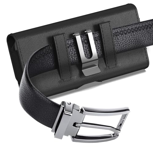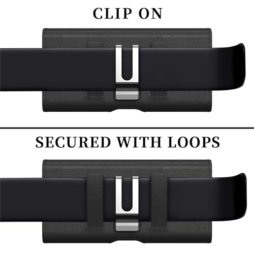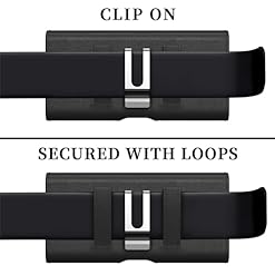 Horizontal holster leather pouch with heavy duty belt clip. Note Fits with case on. Holster shall be loose with out case on.