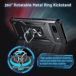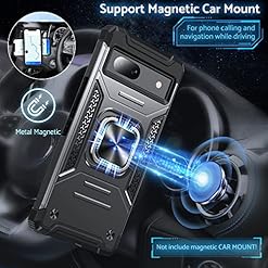 【Multifunctional Ring Stand】 The Google Pixel 7A phone case was designed with a 360° free rotatable metal ring kickstand, can meets your needs for watching videos at any angle. This case was also equipped with a large metal plate, creating stronger adsorption force for the magnetic car mount (NOT INCLOUED). Ideal for navigating the route while driving. [There is a metal plate on the back, please take the case off while wireless charging]