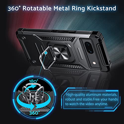 DASFOND Pixel 7A Case, Military Grade Shockproof Protective Phone Case Cover with Enhanced Metal Ring Kickstand [Support Magnet Mount] Compatible with Google Pixel 7A 6.1”