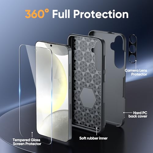 Diaclara Designed for Samsung Galaxy S24 Case 6.2 Inch, Tempered Glass Screen Protector + Camera Protector Shockproof Protective Phone Case – Black