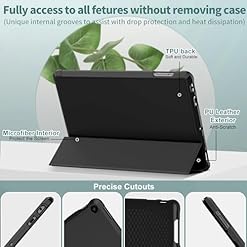 【Full Protection】Our tablet cases are made of microfiber lining with PU leather exterior and flexible TPU back cover. Anti-slip, anti-fingerprint, anti-sweat, shock-absorbing, and anti-drop features provide 360-degree protection for your tablet. Unique internal grooves to assist with drop protection and heat dissipation.
