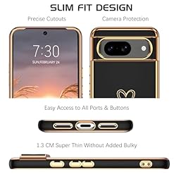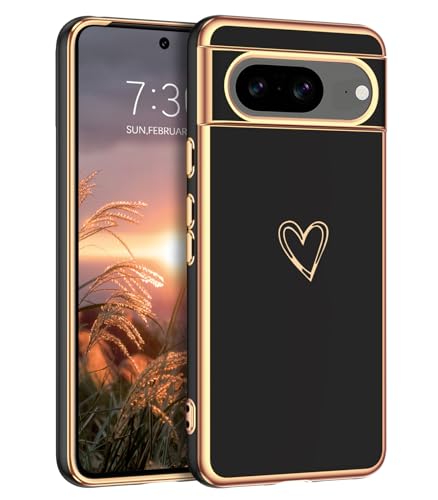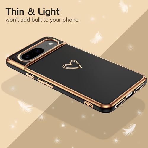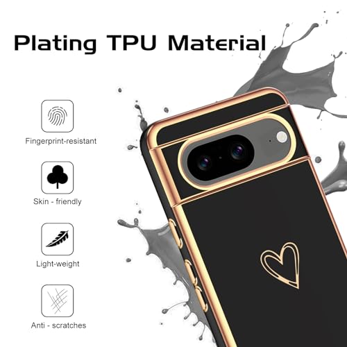 DOMAVER for Google Pixel 8 Case Luxury Cute Gold Heart for Women Girls, Full Camera Protector Shockproof Protective Corner Cover for Google Pixel 8 -Black