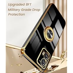 ★【Gold Plated Design & Microfiber Lining】The edge of the shell bumper and the edge of the camera are plated, and the gold plating throughout makes the phone full of luxury, slim and lightweight, not bulky, and easy to hold.The inside has soft liner (soft velvet) to offer protection to your phone from scratches.