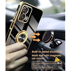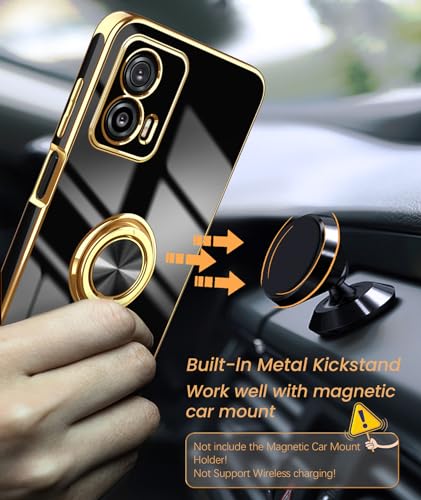 Dretal for Moto G 5G 2023 Case, 2X Screen Protector, 360° Rotatable Ring Holder Magnetic Kickstand,Plated Gold Edge Slim Soft TPU Protective Cover for Motorola G 5G 2023