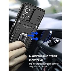 Dretal for Motorola Moto G 5G 2023 Case, with Slide Camera Cover + Tempered Glass Screen Protector [2PCS], Military Grade Shockproof Protective Phone Cover Built Rotated Finger Ring Kickstand