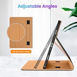 ⭐Adjustable Angles – Multiple horizontal bracket angles for comfortable watching movie or typing. Front document card pocket to keep notes, cash, cards.