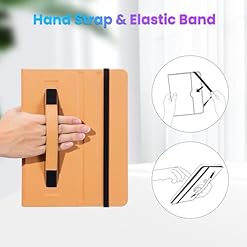 ⭐Multi-functional Features – Built-in leather hand strap (one-handed operation), external elastic band and magnetic buckle enhances magnetic closure.