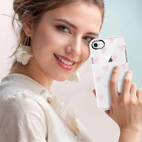 Dumkery BCF Bow Pattern TPU Case with Pink Frame Compatible with iPhone