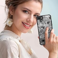 Dumkery Cute Black Floral Rose PC FG Case Compatible with iPhone