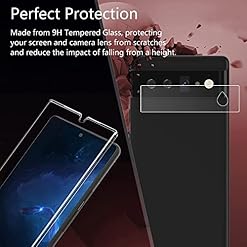 [Fingerprint Compatible] 2 Pack 3D Tempered Glass for Google Pixel 6 Pro Screen Protector + 2 Pack Camera Lens Protector, [Fingerprint Unlock][Anti-Scratch][Work with Case]