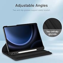 360 Degree Rotating Swivel Case: 360 degree rotating structure in the swivel case for flexible landscape and portrait viewing. Two anti-slip grooves support 3 flexible viewing positions (2 landscape, 1 portrait)