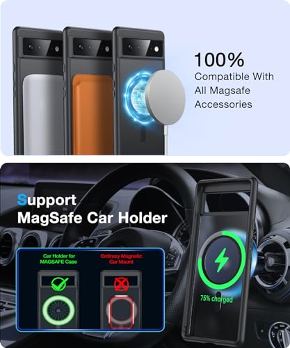 【Compatible with MagSafe Accessories】Accurate built-in strong N52 magnets offers a strong attach experience and faster wireless charging. You can charge your Pixel 6 case on MagSafe or Qi charger for incredible convenience without taking off case.Warm Reminder: All MagSafe phone cases must be used with the MAGSAFE dedicated magnetic car mount and are not compatible with regular magnetic car mounts (due to the small magnetic adhesion area, they cannot align with the MagSafe magnetic ring).