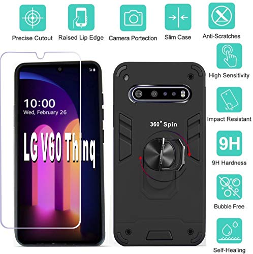 Folmeikat Compatible with LG V60 Thinq/LG V60 Thinq 5G/ G9 Thinq Case, Screen Protector [2Pack] 360 Degree Rotating Metal Ring Slim Shock Absorption Reinforced Corner Soft TPU Silicone Case 6.8″