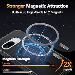 Compatible with Magsafe & Magnetic : The built-in array of 36Pcs N52 magnets perfectly aligned with the phone charging coils, better compatible with Mag-Protected chargers and magnetic battery banks, providing a more stable, compatible and faster charging experience. The magnets array provide a 18N strong magnetic power and 2400GS magnetism, make the case work along side magnetic accessories stably and securely, such as magnetic car mounts, holders, wallets and battery banks
