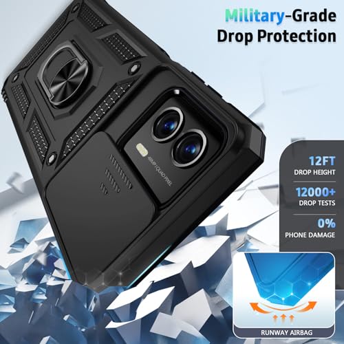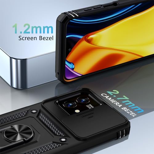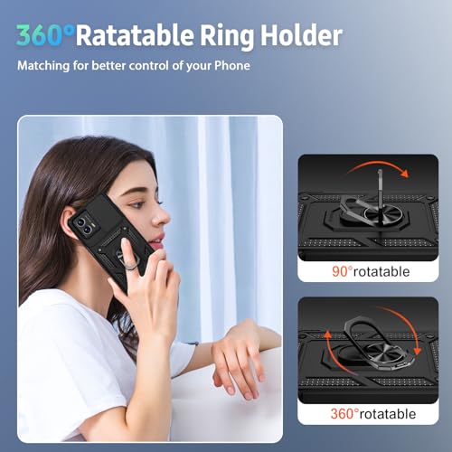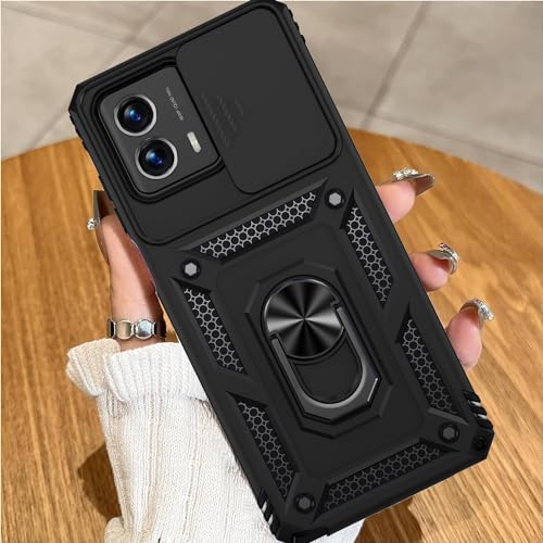 for Moto G 5G 2023 Case, Slide Camera Cover HD Screen Protector Military Grade Magnetic Ring Holder Shockproof Kickstand Protective Case