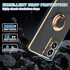👍【Gold Plated Design】The shell bumper and the edges are vacuum-plated with gold colors to make the phone more luxurious, stylish and timeless. The outside has high quality flexible soft TPU, slim and lightweight, not bulky,easy to hold, anti-fingerprint and easy to clean.