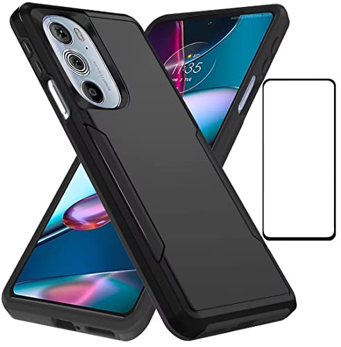 for Motorola Moto Edge + 2022 Case with Screen Protector,Slim Fit Bumper Heavy Duty Shockproof Armor Protection Defender Back Cover Protective Phone Case for Moto Edge 30 Pro