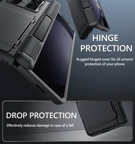 ✅【Hinge Protection & Front Screen Protection】 ① The newly upgraded semi-automatic hinge protection design will also be withdrawn and restored with the change of opening and closing Angle of the phone, providing strong protection for fragile hinges. ② Built-in front screen protective , HD transparent hydrophobic, more sensitive to touch and better offer protection to the external screen of the phone.