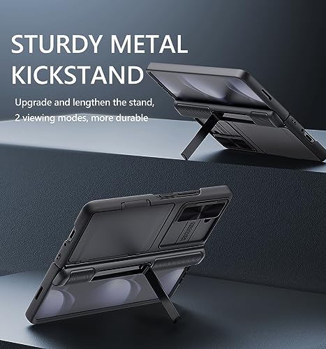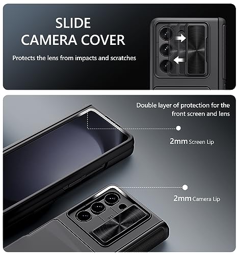 ✅【Sliding Camera Cover】 Z fold 5 case design Sliding camera cover, 2mm raised frame can offer protection to your Galaxy fold 5 phone lens, you’ll be able to easily slide left and right, smooth and effortless, both sides gently lock, at any time for your screen from scratching and damage.