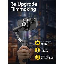 [Long battery life]Born for food photography, vlogging, and live-streaming. Long standby runtime with a 2600mAh big-capacity battery enables Smart XE gimbal stabilizer to run for 10 hours in a row. You can shoot videos all day long with no need to worry about the battery.