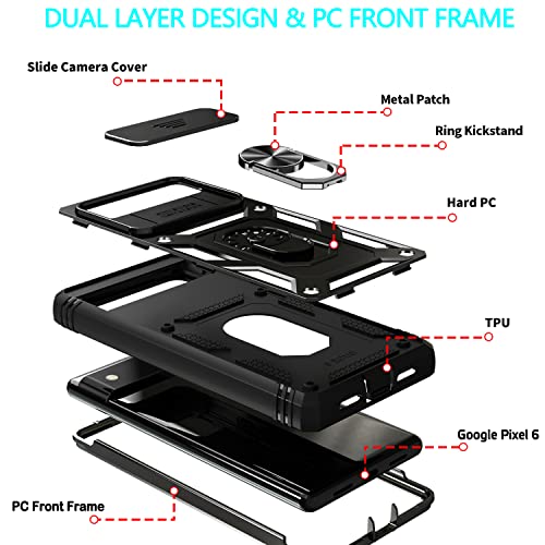 [360 Full-Body Protection]: Dual-Layer case made of Hard PC back cover + Soft TPU Bumper + Sturdy PC front frame for military-grade protection, give protection to your phone against scratches, shocks, bumps, drops, dust and fingerprints. Perfect fit Google Pixel 6 and easy to get right of entry to to all buttons, ports, and features