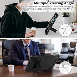 【Functional Kickstand】 – Cover built with convenient kickstand that slides out for typing, gaming or video watching at home or on the go. Built from durable plastic material exterior – Snug fit, hybrid shockproof and protection.