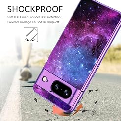 【Screen and Camera Protection】Raised camera and screen edges help your Google Pixel 8 protect against scratches. The high-quality hard plastic and soft TPU material is better more able to absorb the shock. This blue space nebula case can provide your Google Pixel 8 enough protection.