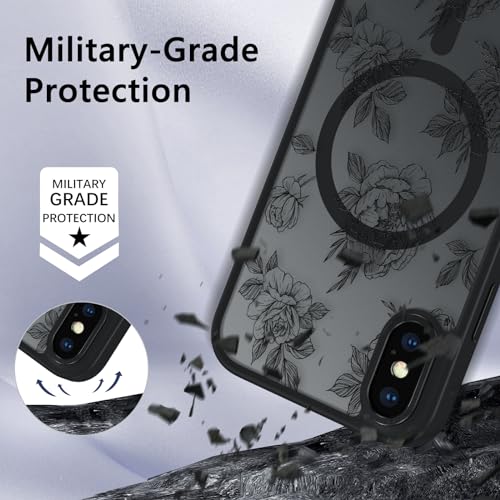 GUAGUA for iPhone Series Magnetic Case, Compatible with Magsafe Beautiful Rose Flowers Print Pattern Translucent Matte Design Shockproof Protective Floral iPhone Series Phone Case for Girls Women