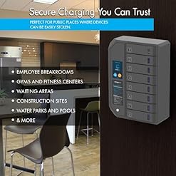 CHARGING CAPACITY: Features 8 secure charging bays, each equipped with dual cables (Lightning and Type-C) for universal device compatibility