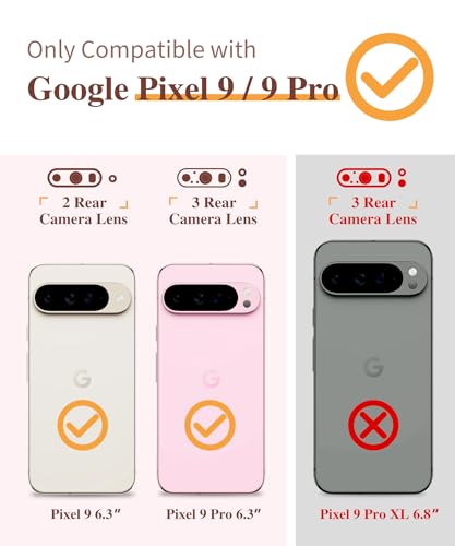 Compatibility: ONLY compatible with Google Pixel 9/Pixel 9 Pro Case 5G (2024 release). Please check your phone model before purchase. The case perfectly supports wireless charging, and allows charging phone without removing the case