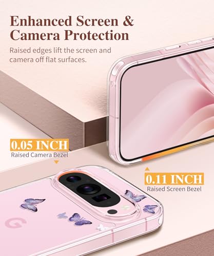 GVIEWIN for Google Pixel 9 Case/Pixel 9 Pro Case, [Screen Protector] [Military Grade Protection] Clear Floral Slim Shockproof Protective Women Phone Case Cover for Pixel 9