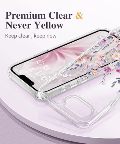 GVIEWIN for iPhone 16e Case with Screen Protector,[Non-Yellowing][Military-Grade Protection] Hard PC&TPU Bumper,Floral Shockproof Protective Clear Phone Case for iPhone 16E 2025