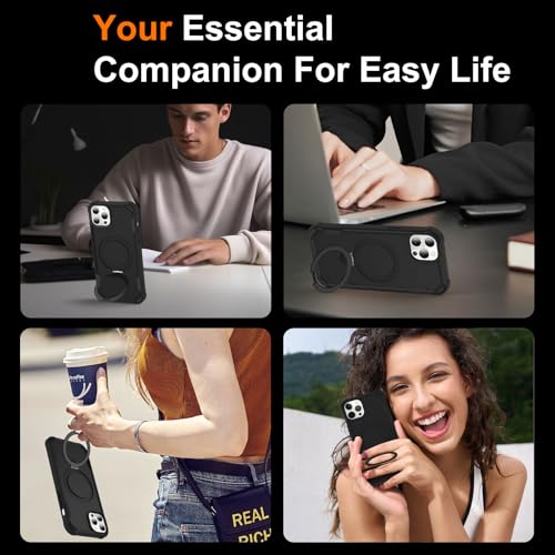HIGLYCASE Compatible with iPhone Case with Invisible Magnetic Ring Stand [Compatible with Magnetic] [Military Drop Protection] Shockproof Hard Back Soft Edge 0730