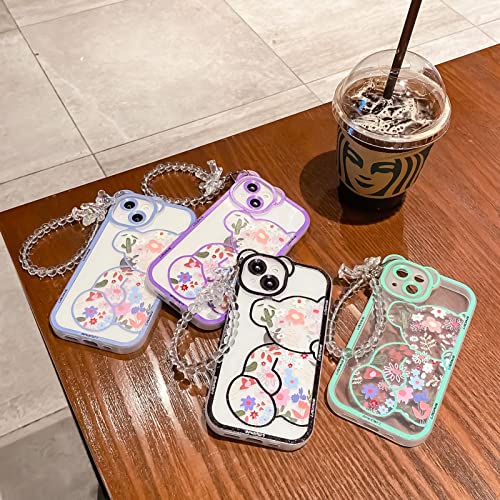 IAIYOXI for iPhone Case with Cute Flowers Bear Pattern, Camera Protector, Clear Phone Case and Lovely Strap Bracelet Chain, Compatible for iPhone for Girls Women
