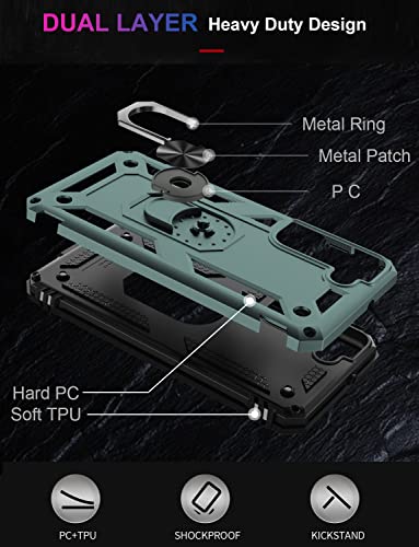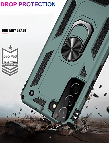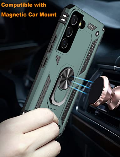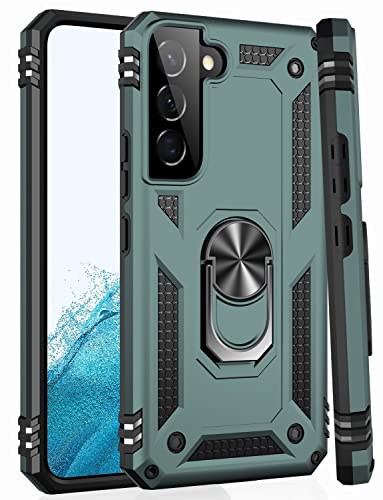 IKAZZ for Galaxy S22 Case,Military Grade Shockproof Heavy Duty Protective Phone Cover Pass 16ft Drop Test with Magnetic Kickstand Car Mount Holder Pine Green