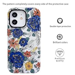 J.west Compatible for iPhone 11 Case Cute Floral Durable Shockproof Drop Impact Dual Layer Phone Case Retro Flowers Design for iPhone 11 6.1″ Blue Roses