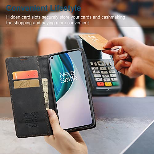 【Multi-Function】: Nord N10 5G wallet case with 2 Card Slots & 1 Side Pocket, Perfect Combination of wallet and cell phone case. Allows you to easily access your cards or cash conveniently, minimizing the need to carry extrasSuitable for everyday life and business trip.[NOTE: Holding too many cards may weaken magnetic closure functionality]