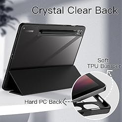 [Transparent PC Back] Built with easy-to-install TPU bumper and hard clear back shell for showing the original beauty of your device, as well as a PU front cover, this full body case highly protects your Tablet against drops and scratches