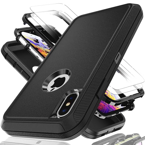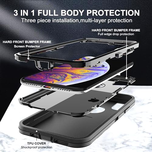 KaiMai for iPhone Xs Max Case with Explosion-proof film[2 Pack],3 in 1 Shockproof TPU Hard PC Bumper Drop-Proof Shell for iPhone Xs MAX