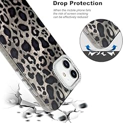 KANGHAR Case Leopard Printed Pattern Cute Cheetah Phone Case Clear Bumper Hard Back Shockproof Protective Diamond Glittter Camera Lens Cover