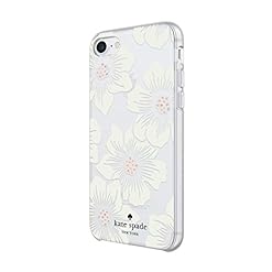 Kate Spade New York Phone Case|For Apple iPhone 8, iPhone 7, iPhone 6S, and iPhone 6|Protective Phone Cases with Slim Design, Drop Protection,and Floral Print-Hollyhock Cream/Blush/Crystal Gems/Clear