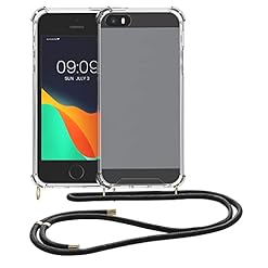 kwmobile Crossbody Case Compatible with Apple iPhone SE (1.Gen 2016) / iPhone 5 / iPhone 5S Case – Clear TPU Phone Cover w/Lanyard Cord Strap – Black/Transparent