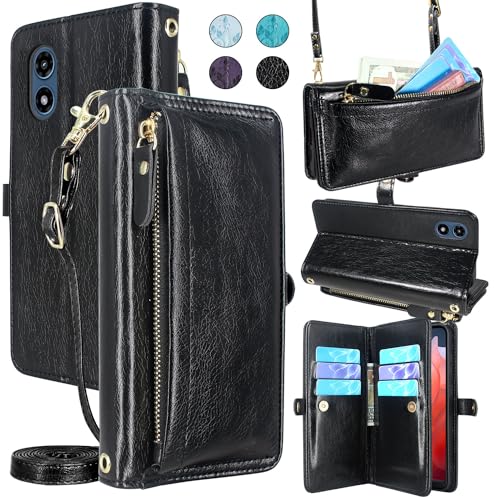 Lacass for Motorola Moto G Play 4G 2024 Case Wallet, [Cards Theft Scan Protection] Card Holder Zipper Leather Flip Cover Crossbody Wrist Strap with Stand