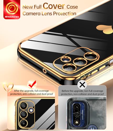 LeYi Case+Full Camera Lens Protection,Love Heart Plating Girly Women Luxury Soft TPU Shockproof Case