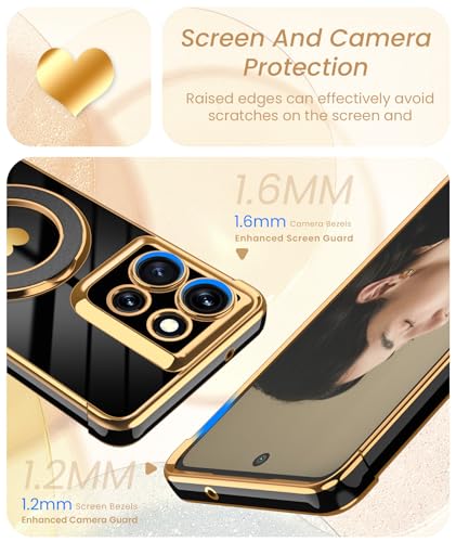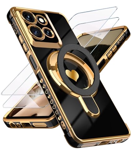 Liufcx for Motorola Moto G 5G 2025 Love Heart Kickstand Case with 2X Screen Protector: Luxury Plated Gold Edge Slim Soft TPU Shockproof Protection Case Cover for Moto G 5G 2025