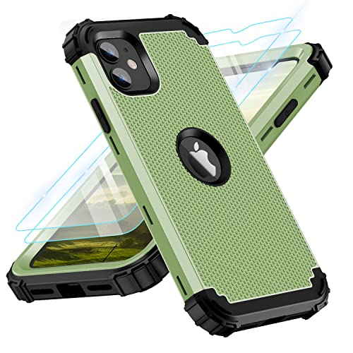 LONTECT for iPhone 11 Case with [2 Pack] Tempered Glass Screen Protector Shockproof Heavy Duty Hybrid Sturdy High Impact Protective Case for Apple iPhone 11 6.1 2019