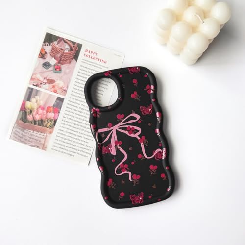 Lovmooful Compatible for iPhone Case Cute Bow Butterfly Flower Floral with Wave Border Design for Girls Women Soft TPU Shockproof Protective Girly for iPhone Case