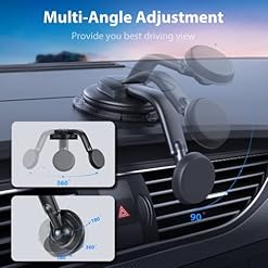 【Adjust Car Holder As You Wish】 A magnetic phone holder features a ball joint and arm that are 10 times stronger than unusual ones. A flexible arm can also be adjusted to the most convenient viewing angle, ensuring driving stability and safety.