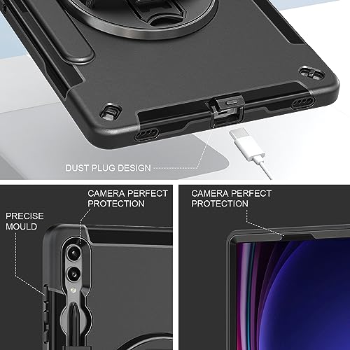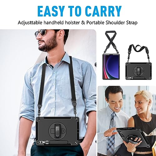 Miesherk Case for Galaxy Tab S9/S10 Plus: Military Grade Shockproof Case with Hand/Shoulder Strap-S Pen Holder-Rotating Kickstand for Samsung Galaxy S9 Plus 12.4 Inch